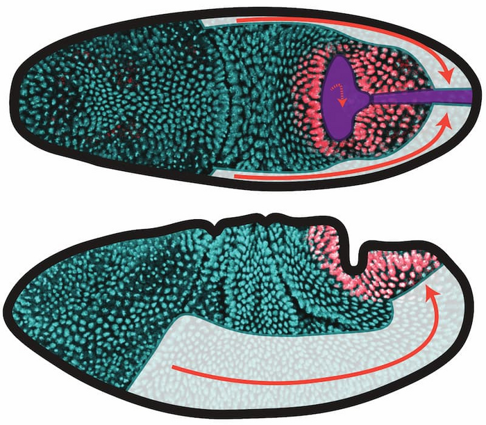Eine kleine Gewebefalte in Embryonen von Fruchtfliegen kompensiert mechanische Belastungen und könnte sich als Reaktion auf mechanische Kräfte…