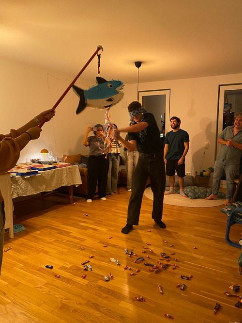 Celebration day for the Mateus lab, cheering to the first research paper of the lab, a team effort led by Jannick, Lucas’ and Rita’s review on tissue growth control, and Vinita’s masters graduation! To celebrate, a nice little piñata party awaited our brave scientists.