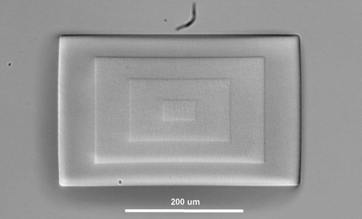 Hydrogel microstructure as step pyramid, created by photo-polymerization of PEG-acrylate. Image by M. Bugiel (BCF)